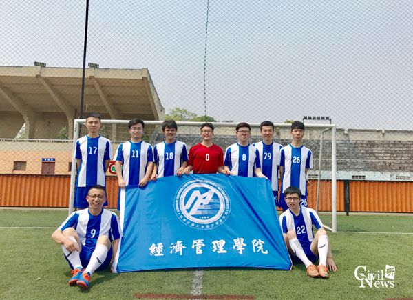 另一场小组赛的角逐在经管队和结构队间展开,一声哨响比赛开始,经管队与结构队你追我赶,不分伯仲,但是经管队首先把握住了机会,先下一城。结构队迅速调整队形,积极跑动,5分钟后扳平比分。随后结构队愈战愈勇,打得收放自如,巧妙的配合让他们的前锋把握住了绝好的两次机会,上半场以3:1领先结束。下半场中,经管队重新调整战术,集中防守,主打防守反击,这样战术果真收到效果,开场8分钟,在一次防反中直接洞穿结构队防线,比分改写为3:2。尝到甜头的经管队继续执行防反战术,在临近终场时,奋力将比分扳平,比分最终定格在3:3。
