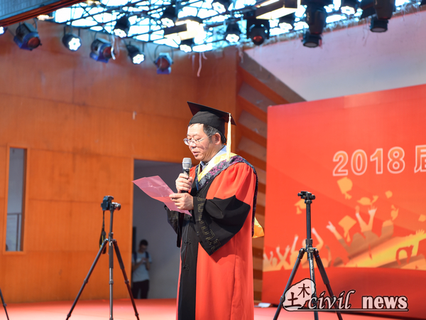 仪式第二项,由刘学毅教授宣读《yl23455永利官网2018届本科生毕业及授位决定》。刘教授说到:“2018届土木毕业生即将阔别母校,奔向祖国各地,建设祖国大好河山。根据yl23455永利官网土木专业培养计划的要求,土木476名同学通过184个学分,完成学业要求,获得土木工程工学学士学位。步入社会后,勇当社会重担,引领时代浪潮。脚踏实地志存高远,在未来的征途中继续发扬‘竢实扬华,自强不息’的交大精神;同时续写‘百年土木,树人百年’的精神篇章!”