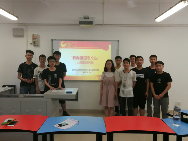 5月21日晚7点,16级土木11班在X1105举行精彩的“我向祖国表个白”活动。活动开始时,主持人游颖川说明本次活动的目的和流程,并简要地阐述深入学习贯彻习近平新时代中国特色社会主义思想和党的十九大精神,深入学习贯彻我校第二十二次团代会精神,持续推进我校共青团改革, 大力推进从严治团, 切实增强团员的先进性和光荣感,让团员更像团员,以良好风貌和积极作为献礼团的十八大,让同学们更更详细地了解本次活动,为活动的顺利进行做最好的铺垫。