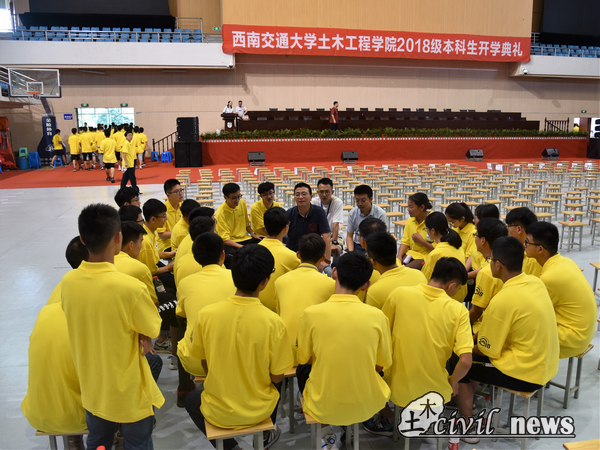 至此,每个班级的导师见面会正式开始,记者走进了4班的导师见面会。4班的辅导员是地下工程系的王士民副教授与张恒老师。王士民老师先祝贺了大家来到了西南交大,随后详细讲解了土木专业的相关问题,助辅陆粤与4班同学一直在认真聆听。